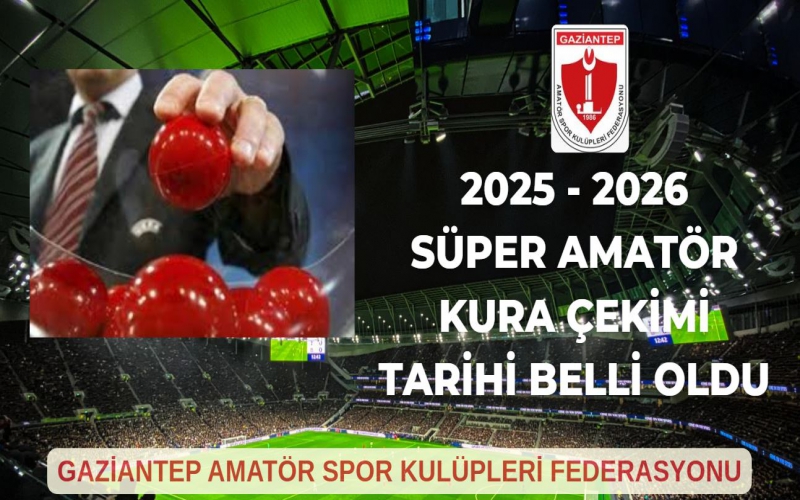 Gaziantep Amatör Spor Kulüpleri Federasyonu tarafından 2025-2026 Futbol Sezonu Süper Amatör Lig kura çekimi tarihi belli oldu. Kura çekimi 22 Eylül Pazartesi günü saat 16:00’da Federasyon Binası Toplantı Salonu’nda yapılacak.